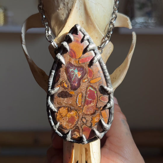Boulder Opal blends luminous opal energy with stabilizing ironstone, encouraging emotional release, intuitive insight, and grounded creativity. A supportive stone for renewal, resilience, and authentic expression.
