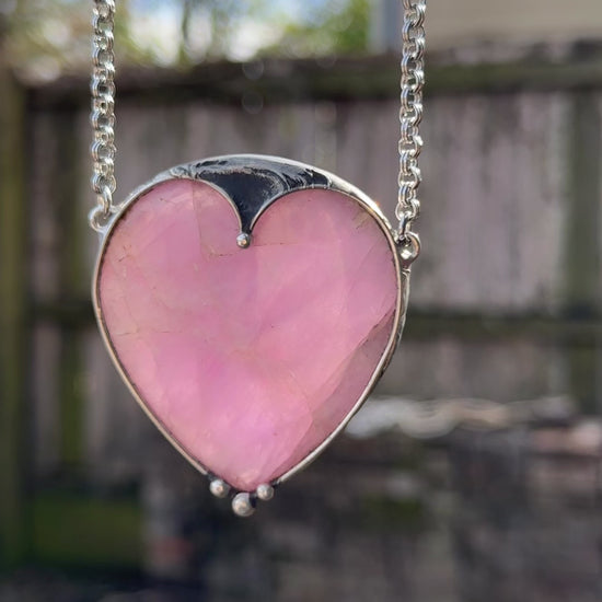 This Kunzite necklace is crafted using the method called tiffany technique. The process consists of using lead-free silver solder. The pendant is held by a stainless steel chain that may be altered to any length upon request. Please refer to photos to size.